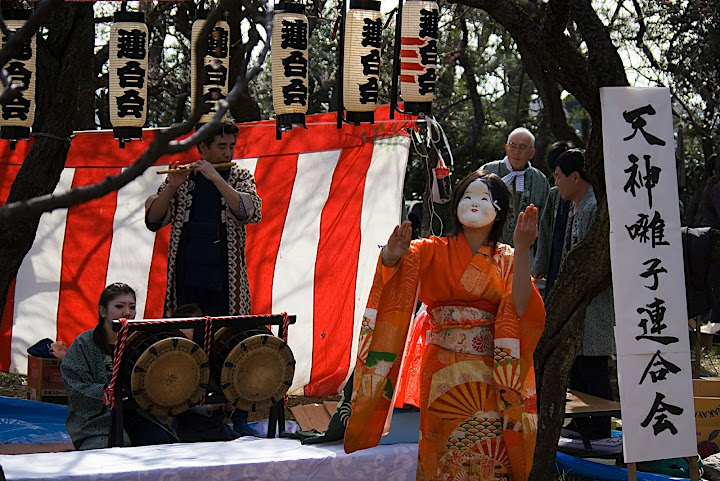 今日は谷保天満宮の梅祭りを見て来ました。・・・が、大幅に遅刻して、出し物で見れたのはこのお囃子のみでした。で、このお囃子ですが、女の子はあくまでおしとやかに、男の子はどこかひょうきんな動きでした。それにしても、踊りが堂に入っていて、こう言った舞踊は日本人のDNAに組み込まれているんじゃないか、と思ったほどです。